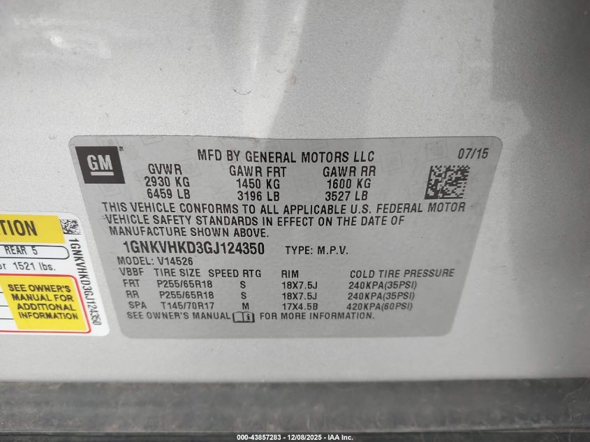 2016 CHEVROLET TRAVERSE - 1GNKVHKD3GJ124350, цвет - Серебряный, 3.6, Бензин, Полный привод из США