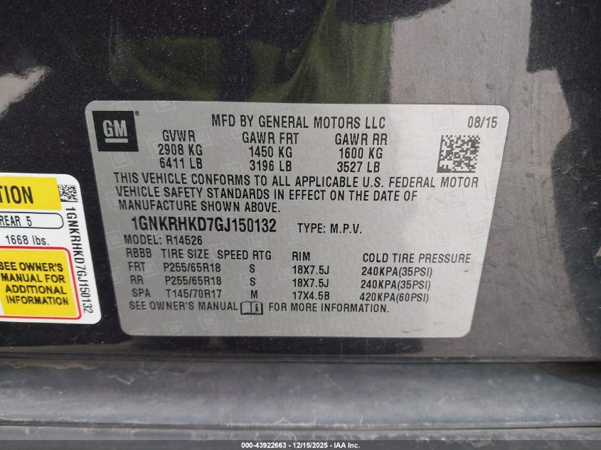 Цвет СерыйЦилиндры 6Привод Передний приводVIN 1GNKRHKD7GJ150132Состояние Заводится и едет (проверено)