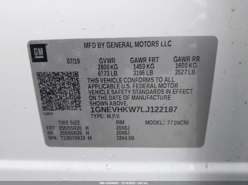 Цвет БелыйЦилиндры 6Привод Полный приводVIN 1GNEVHKW7LJ122187Состояние Заводится и едет (проверено)Повреждения Передняя правая