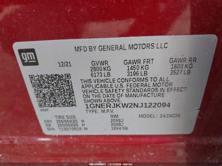 2022 CHEVROLET TRAVERSE - 1GNERJKW2NJ122094, цвет - Бордовый, 3.6, Бензин, Передний привод из США