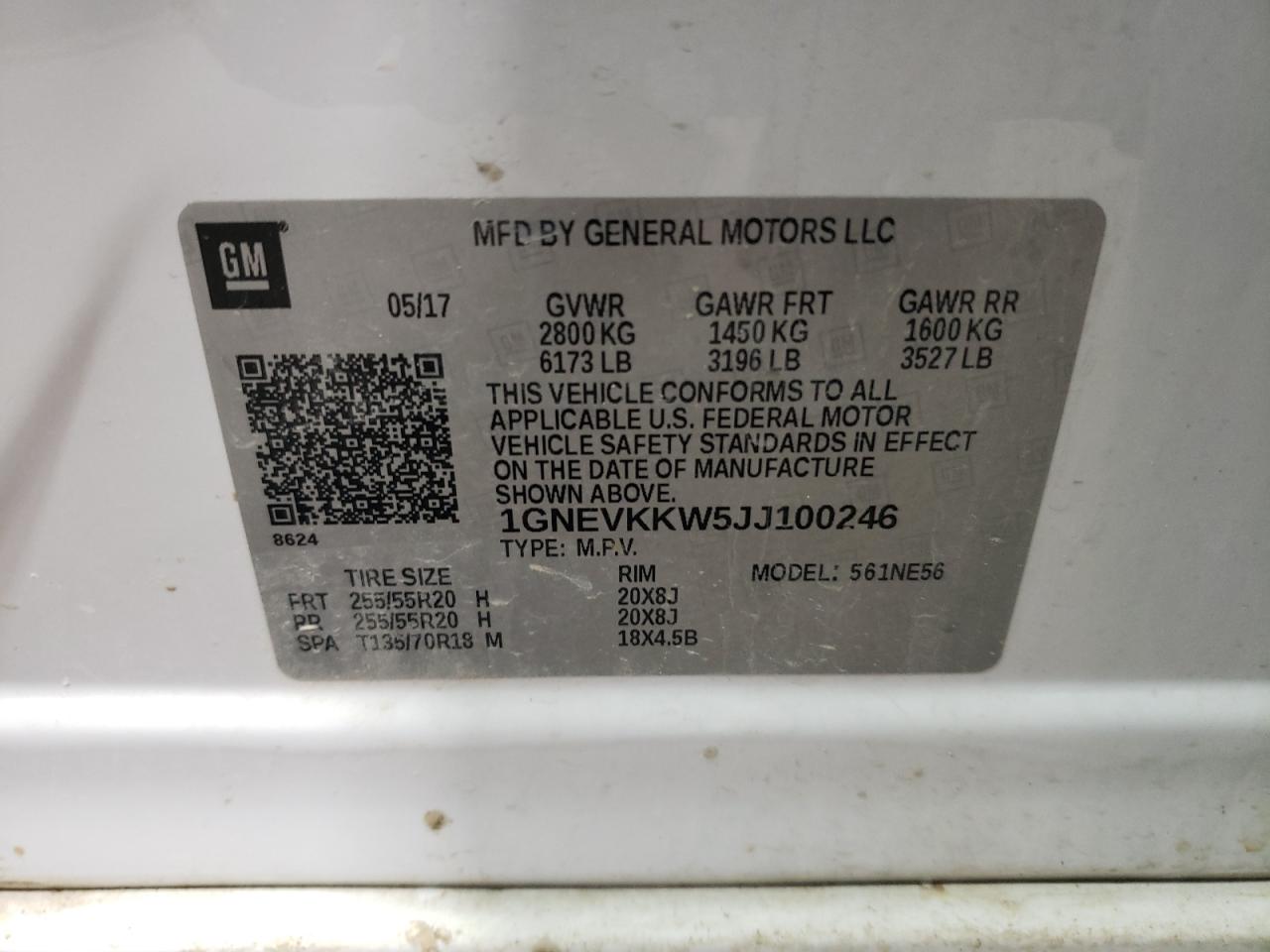 Цвет БелыйЦилиндры 6Привод Полный приводVIN 1GNEVKKW5JJ100246Состояние Заводится и едет (проверено)Повреждения Передняя или задняя