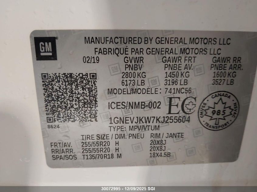 Цвет БелыйЦилиндры 6Привод Полный приводVIN 1GNEVJKW7KJ255604Состояние Заводится и едет (проверено)Дата аукциона 2025-12-17