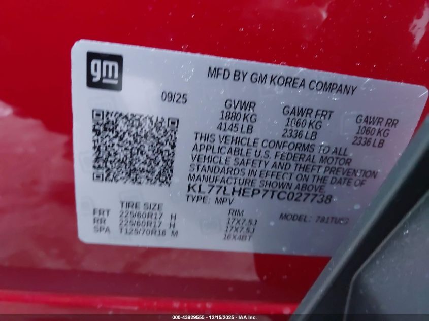 2026 CHEVROLET TRAX - KL77LHEP7TC027738, цвет - , 1.2, Бензин, Передний привод из США