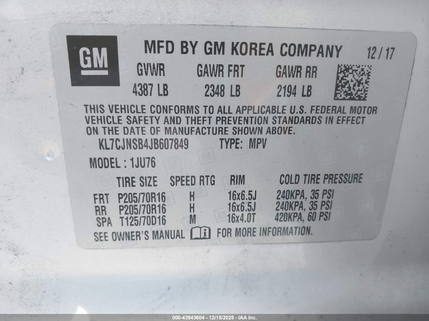 2018 CHEVROLET TRAX - KL7CJNSB4JB607849, цвет - Серебряный, 1.4, Бензин, Полный привод из США