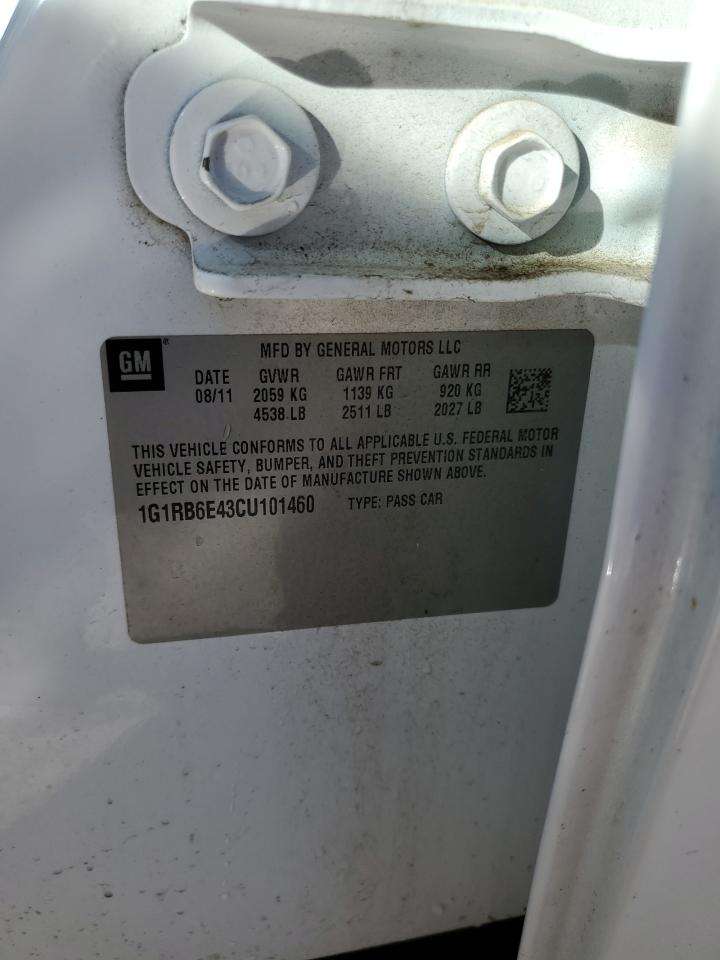2012 CHEVROLET VOLT - 1G1RB6E43CU101460, цвет - Белый, 1.4, Гибрид, из США