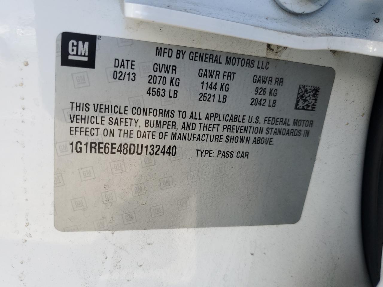 Цвет БелыйЦилиндры 4VIN 1G1RE6E48DU132440Состояние НеизвестноПовреждения Передняя или задняяДата аукциона 2025-10-07