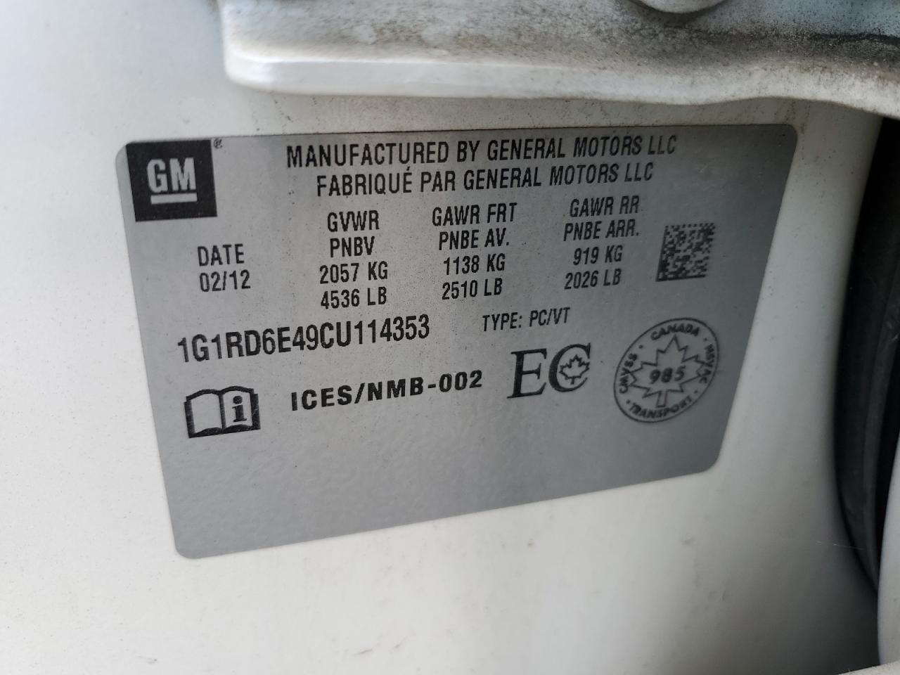2012 CHEVROLET VOLT - 1G1RD6E49CU114353, цвет - Белый, 1.4, Гибрид, из США