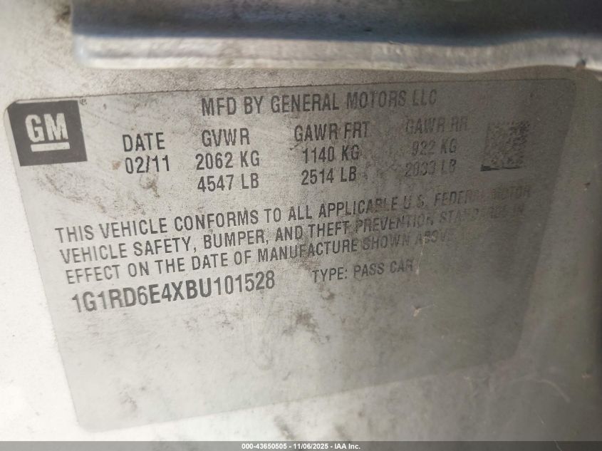 Цвет СеребряныйЦилиндры 4Привод Передний приводVIN 1G1RD6E4XBU101528Состояние НеизвестноПовреждения Передняя или задняяДата аукциона 2025-12-17
