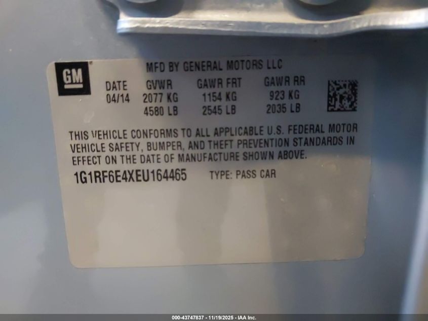 2014 CHEVROLET VOLT - 1G1RF6E4XEU164465, цвет - Синий, 1.4, Гибрид, Передний привод из США