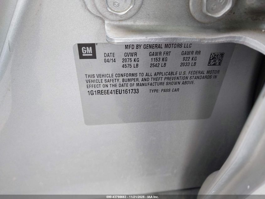 2014 CHEVROLET VOLT - 1G1RE6E41EU161733, цвет - Серебряный, 1.4, Гибрид, Передний привод из США