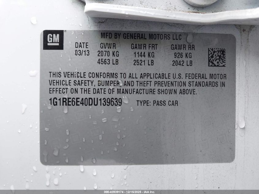 2013 CHEVROLET VOLT - 1G1RE6E40DU139639, цвет - Белый, 1.4, Гибрид, Передний привод из США