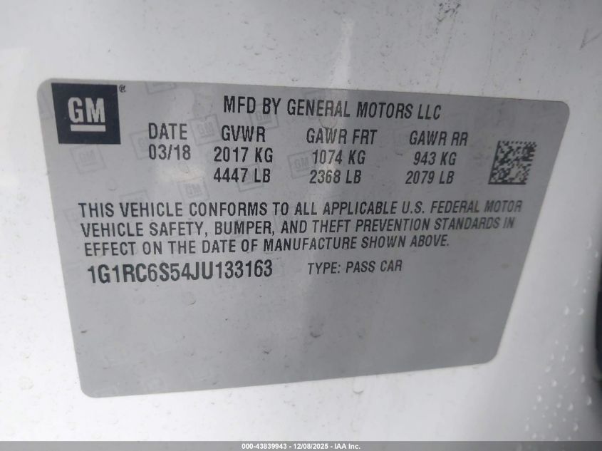 2018 CHEVROLET VOLT - 1G1RC6S54JU133163, цвет - Белый, 1.5, Гибрид, Передний привод из США