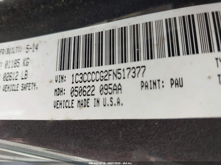 Цвет СерыйЦилиндры 6Привод Передний приводVIN 1C3CCCCG2FN517377Состояние СтационарноПовреждения По всему авто
