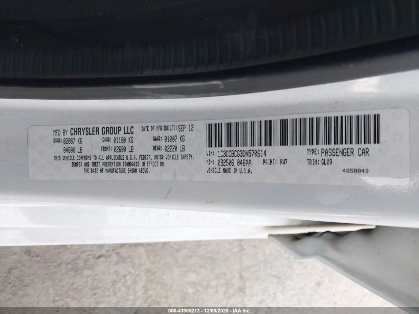 Цвет БелыйЦилиндры 6Привод Передний приводVIN 1C3CCBCG3DN570614Состояние СтационарноПовреждения Передняя или задняя