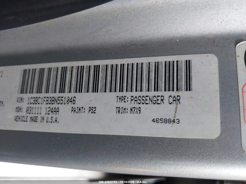 Цвет СеребряныйЦилиндры 4Привод Передний приводVIN 1C3BC1FB3BN551046Состояние СтационарноПовреждения Задняя левая