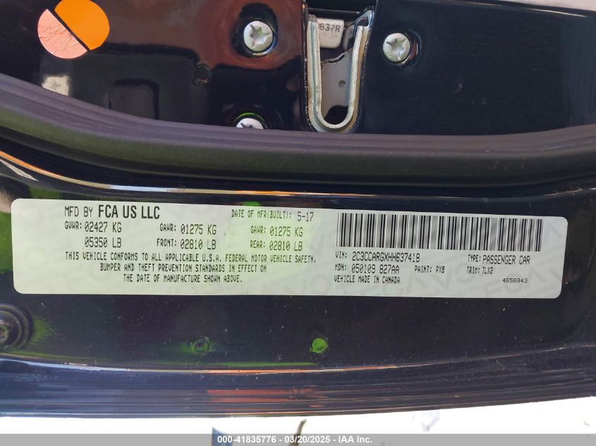 2017 CHRYSLER 300 - 2C3CCARGXHH637418, цвет - Черный, 3.6, Бензин, Полный привод из США