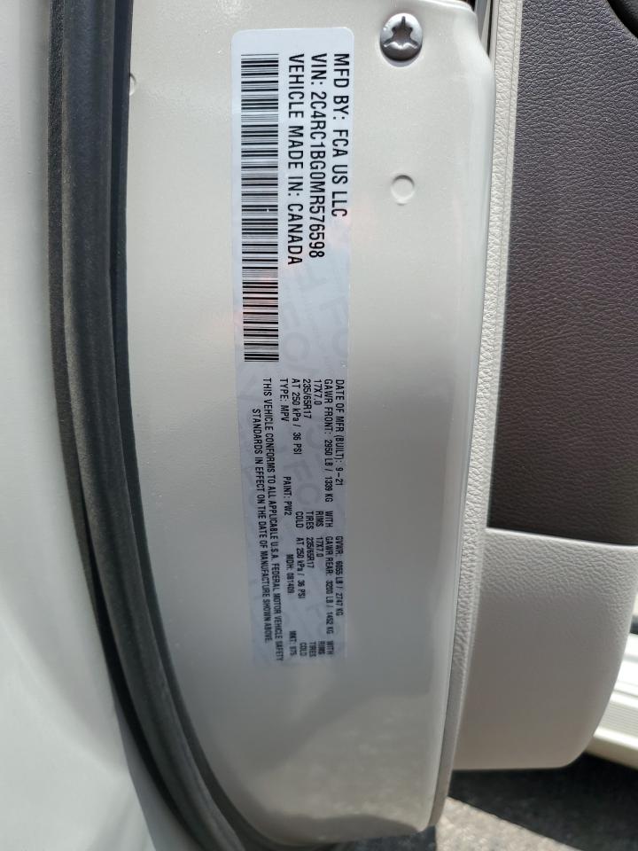 2021 CHRYSLER PACIFICA - 2C4RC1BG0MR576598, цвет - Белый, 3.6, Бензин, из США