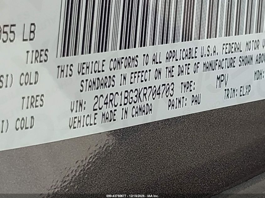 2019 CHRYSLER PACIFICA - 2C4RC1BG3KR704703, цвет - Серый, 3.6, Бензин, Передний привод из США