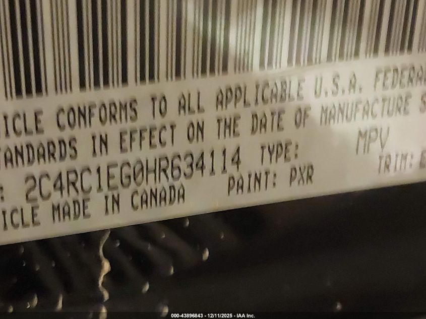 2017 CHRYSLER PACIFICA - 2C4RC1EG0HR634114, цвет - Черный, 3.6, Бензин, Передний привод из США