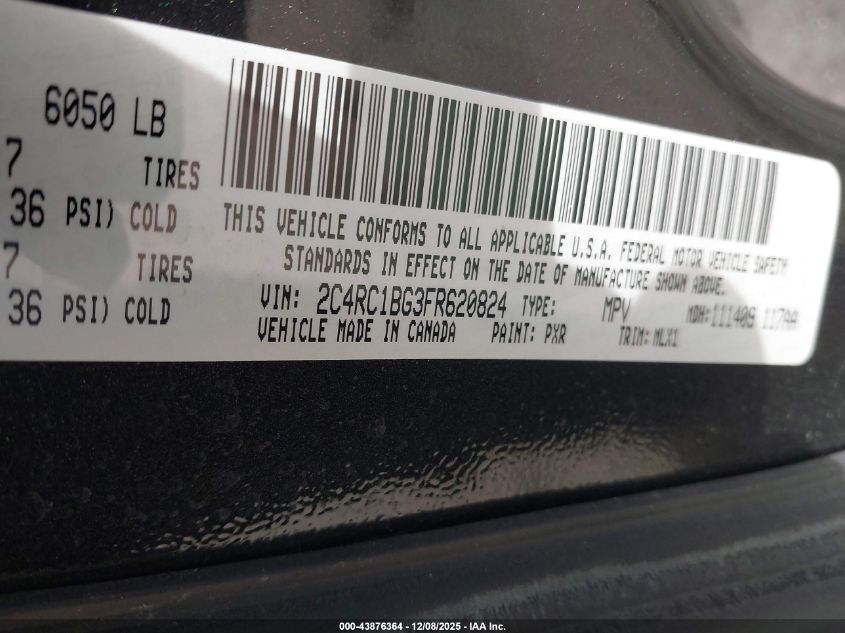 2015 CHRYSLER TOWN & COUNTRY - 2C4RC1BG3FR620824, цвет - Черный, 3.6, Бензин, Передний привод из США