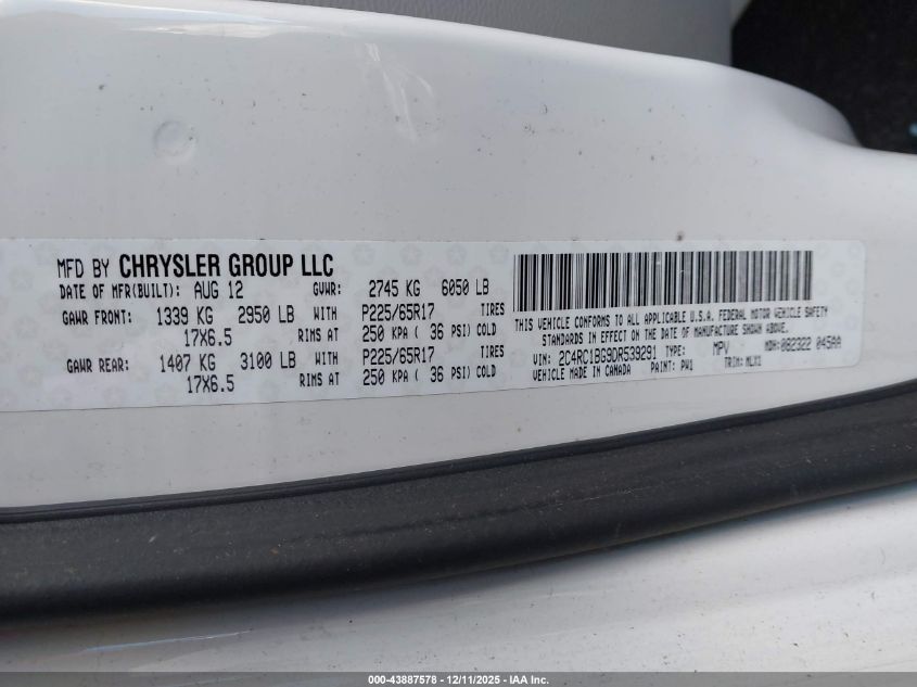 Цвет БелыйЦилиндры 6Привод Передний приводVIN 2C4RC1BG9DR539291Состояние СтационарноПовреждения Обычный износДата аукциона 2025-12-18