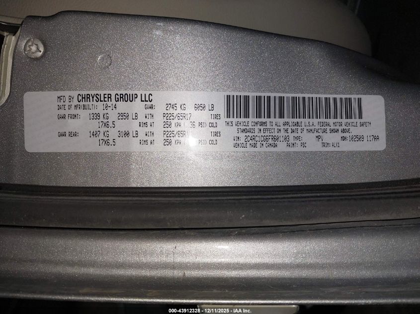 2015 CHRYSLER TOWN & COUNTRY TOURING