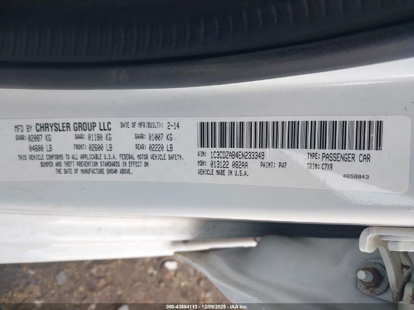 2014 DODGE AVENGER - 1C3CDZAB4EN233349, цвет - Белый, 2.4, Бензин, Передний привод из США