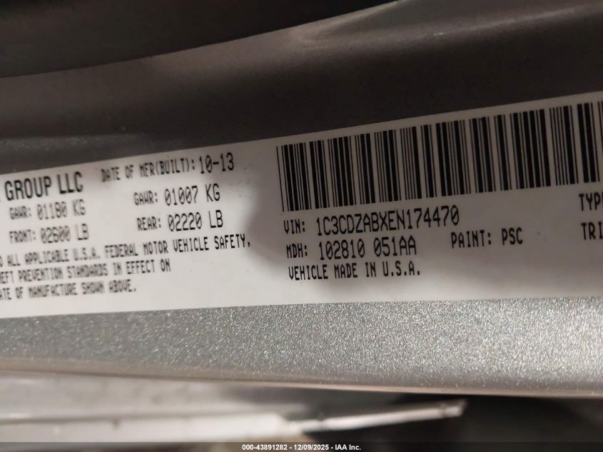 2014 DODGE AVENGER - 1C3CDZABXEN174470, цвет - Серебряный, 2.4, Бензин, Передний привод из США