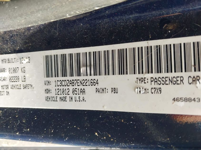 2014 DODGE AVENGER - 1C3CDZAB7EN221664, цвет - Синий, 2.4, Бензин, Передний привод из США
