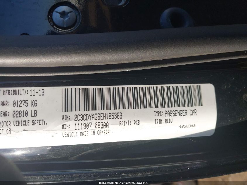 Цвет ЧерныйЦилиндры 6Привод Задний приводVIN 2C3CDYAG6EH185383Состояние СтационарноПовреждения По бокам
