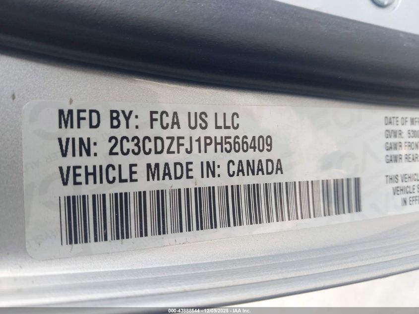 Цвет СеребряныйЦилиндры 8Привод Задний приводVIN 2C3CDZFJ1PH566409Состояние Заводится и едет (проверено)Повреждения Передняя или задняя