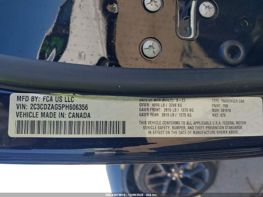 2023 DODGE CHALLENGER - 2C3CDZAG5PH606356, цвет - Черный, 3.6, Бензин, Задний привод из США
