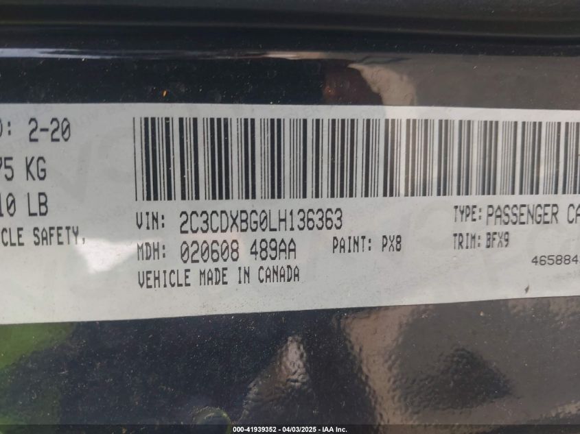 2020 DODGE CHARGER - 2C3CDXBG0LH136363, цвет - Черный, 3.6, Бензин, Задний привод из США
