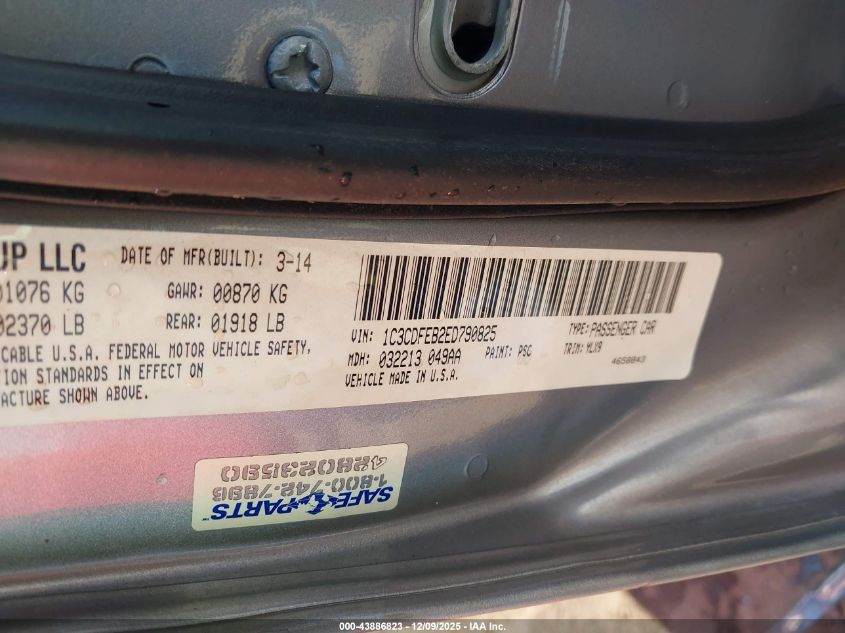 2014 DODGE DART - 1C3CDFEB2ED790825, цвет - Серебряный, 2.4, Бензин, Передний привод из США