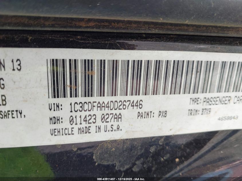2013 DODGE DART - 1C3CDFAA4DD267446, цвет - Черный, 2.0, Бензин, Передний привод из США