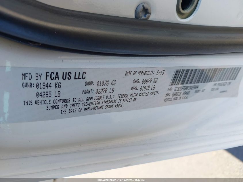 2015 DODGE DART - 1C3CDFBB0FD422004, цвет - Белый, 2.4, Бензин, Передний привод из США
