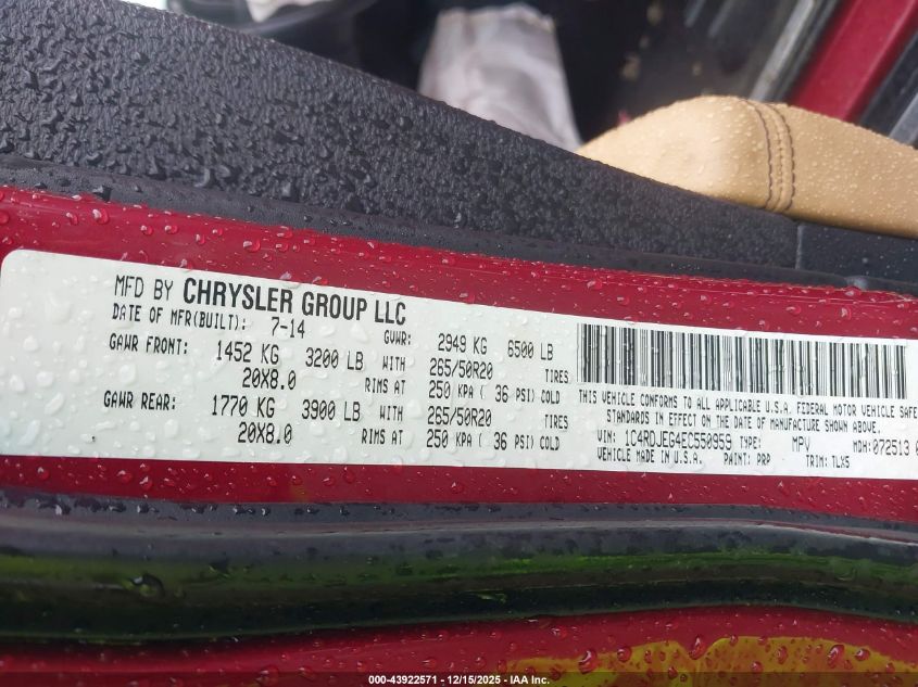 2014 DODGE DURANGO - 1C4RDJEG4EC550959, цвет - Красный, 3.6, Бензин, Полный привод из США