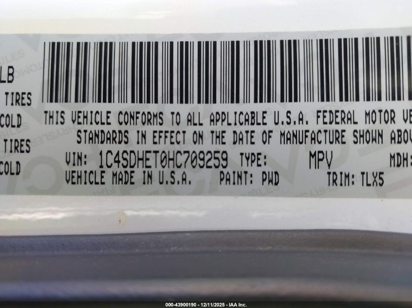 2017 DODGE DURANGO - 1C4SDHET0HC709259, цвет - Белый, 5.7, Бензин, из США