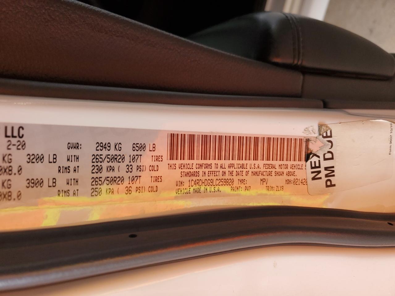 2020 DODGE DURANGO - 1C4RDHDG9LC259820, цвет - Белый, 3.6, Бензин, Задний привод из США