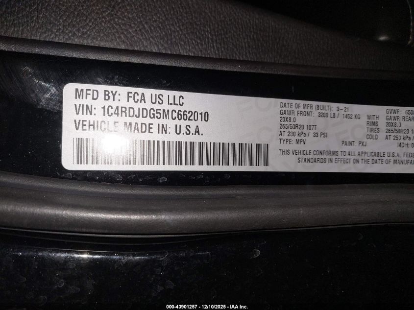 2021 DODGE DURANGO - 1C4RDJDG5MC662010, цвет - Черный, 3.6, Бензин, Полный привод из США