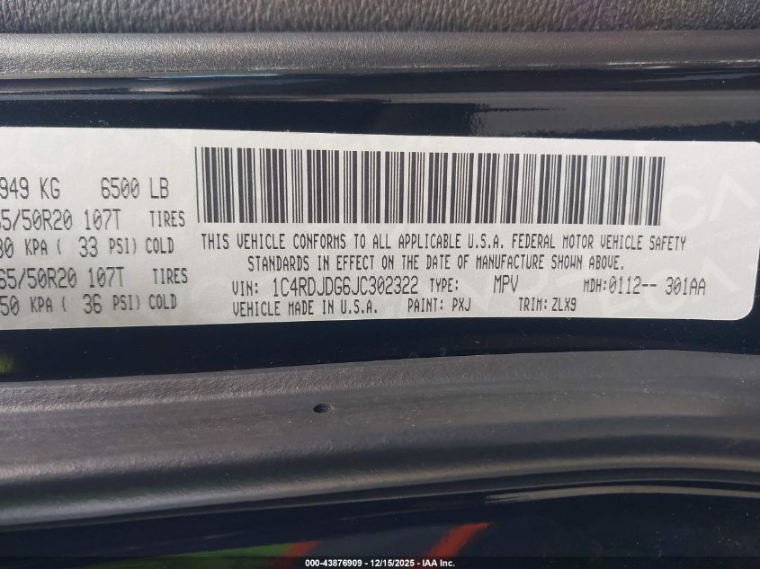 2018 DODGE DURANGO - 1C4RDJDG6JC302322, цвет - Черный, 3.6, Бензин, Полный привод из США