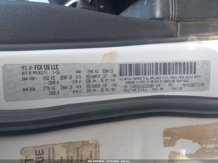 2016 DODGE DURANGO - 1C4RDHDG1GC322284, цвет - , 3.6, Бензин, из США