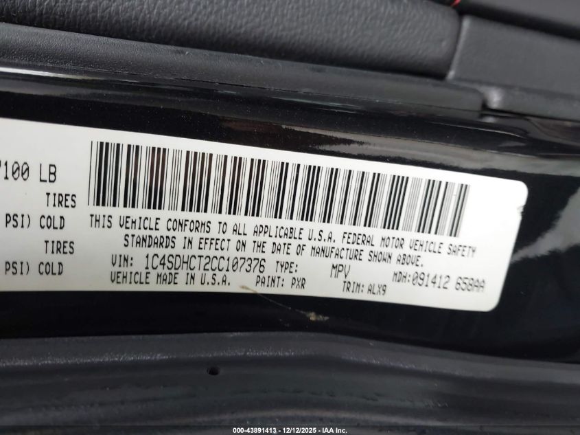 2012 DODGE DURANGO - 1C4SDHCT2CC107376, цвет - Черный, 5.7, Бензин, из США