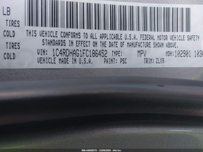 2015 DODGE DURANGO - 1C4RDHAG1FC186452, цвет - Серый, 3.6, Бензин, из США