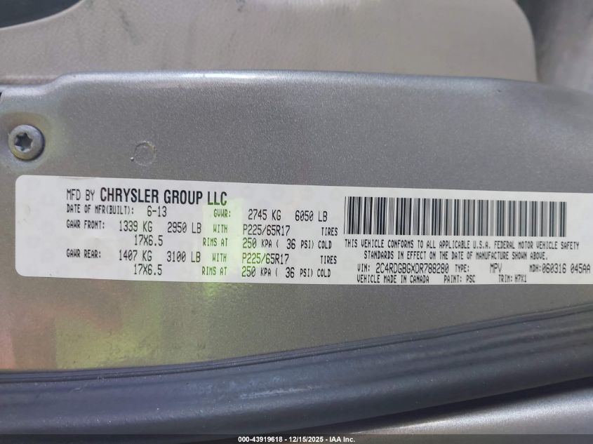 2013 DODGE GRAND CARAVAN - 2C4RDGBGXDR788280, цвет - Серебряный, 3.6, Бензин, Передний привод из США