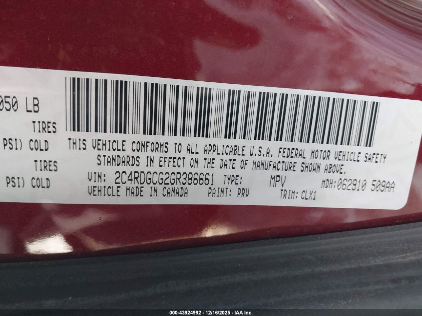 2016 DODGE GRAND CARAVAN - 2C4RDGCG2GR386661, цвет - , 3.6, Бензин, Передний привод из США