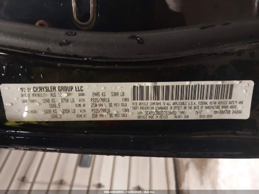 2013 DODGE JOURNEY - 3C4PDCAB2DT510492, цвет - Черный, 2.4, Бензин, Передний привод из США