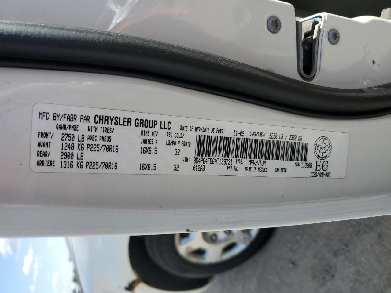 2010 DODGE JOURNEY - 3D4PG4FB6AT139731, цвет - Белый, 2.4, Бензин, из США