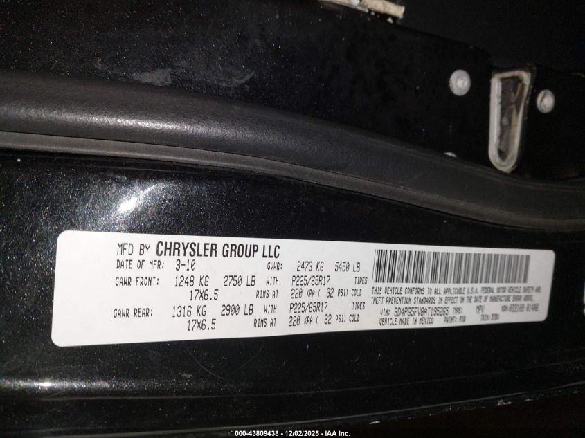 2010 DODGE JOURNEY - 3D4PG5FV8AT195265, цвет - Черный, 3.5, Бензин, Передний привод из США