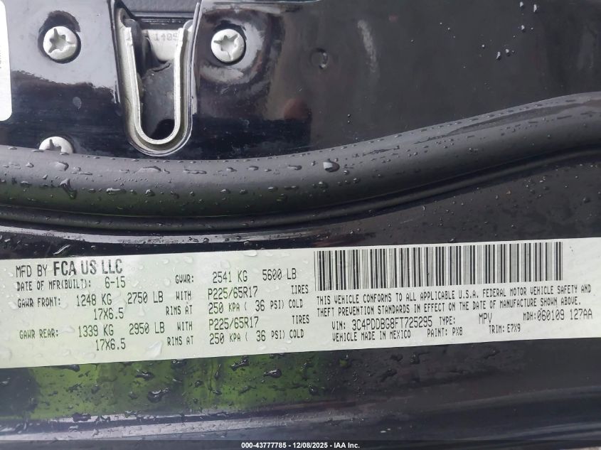 2015 DODGE JOURNEY - 3C4PDDBG8FT725295, цвет - Черный, 3.6, Бензин, Полный привод из США